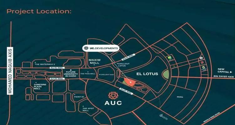 من أكثر العناصر التي تساعد على نجاح أي مشروع سكني الموقع الذي يتمتع به؛ لذا حرصت شركة يو سي للتطوير العقاري على اختيار أفضل موقع حيوي واستراتيجي لـ كمبوند ترو، حيث يقع في قلب القاهرة الجديدة في منطقة اللوتس تحديدًا، وهو ما يجعل المشروع يقترب من أهم الطرق والمناطق والمحاور الرئيسية، وهي كالآتي: