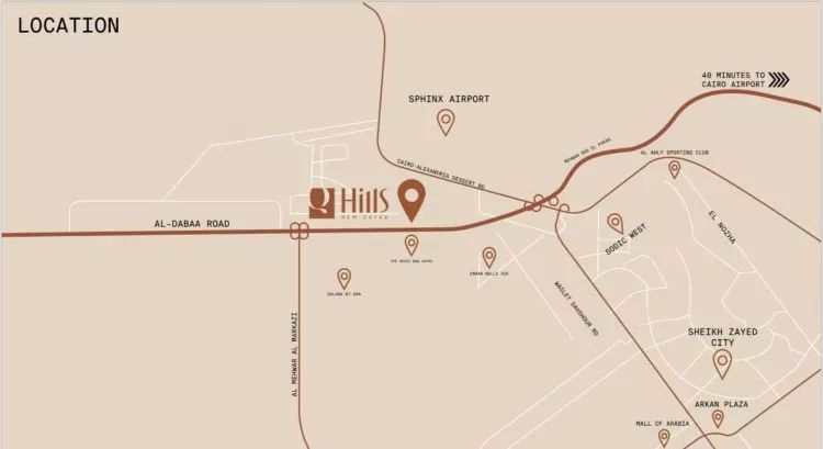 One of the most important elements that help the success of any residential project is its location. Therefore, Q Development and Real Estate Company was keen to choose the best vital and strategic location for Q Hills Compound، It is located in the heart of New Zayed City, which makes the project close to the most important roads, areas and main axes, which are as follows: