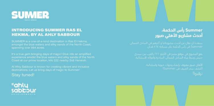 company Al-Ahly is patient In real estate development It is the developer of Summer Ras El Hekma Village, and it is one of the largest leading companies in the Egyptian real estate market, with more than 25 years of experience, and is famous for its good reputation among clients, and its distinguished projects that combine elegance and sophistication, in addition to its interest in applying international standards in design.